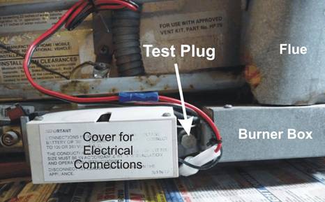 gas off at the propane tank before removing the plug. Cover for electrical connections has been removed and a 12 mm wrench