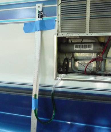 Step 9: Light the fridge and note change in level. Write it down. Start water heater and/or furnace to see
