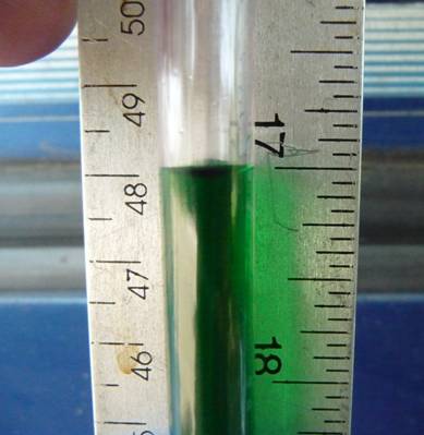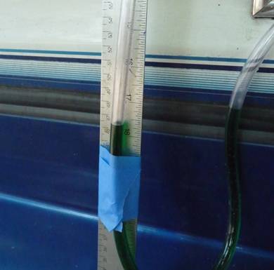 on the gas at the tank. Measure the level with appliances off. Write it down. In this case it reads 17 inches.