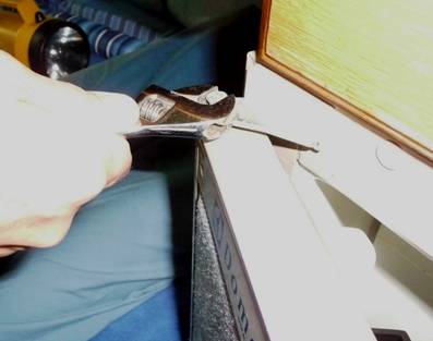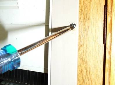 is little room to use a screwdriver (and it is a Robertson screw). After trying several other approaches,